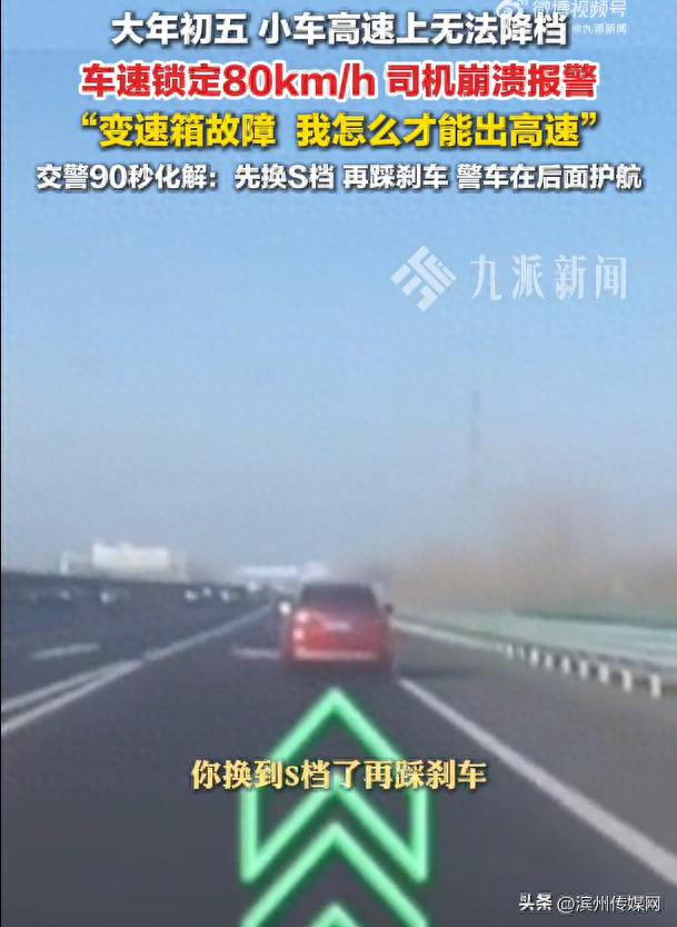 就在驾驶员准备尝试操作时,突然想到车辆低速挡:“能换到S挡吗?S挡能不能减速?”“可以!先换到S挡,再尝试踩刹车!”交警立即调整方案,同时叮嘱驾驶员切勿急躁:“等我们的警车跟上你的车辆后,再踩刹车试一下,我们全程护航!”